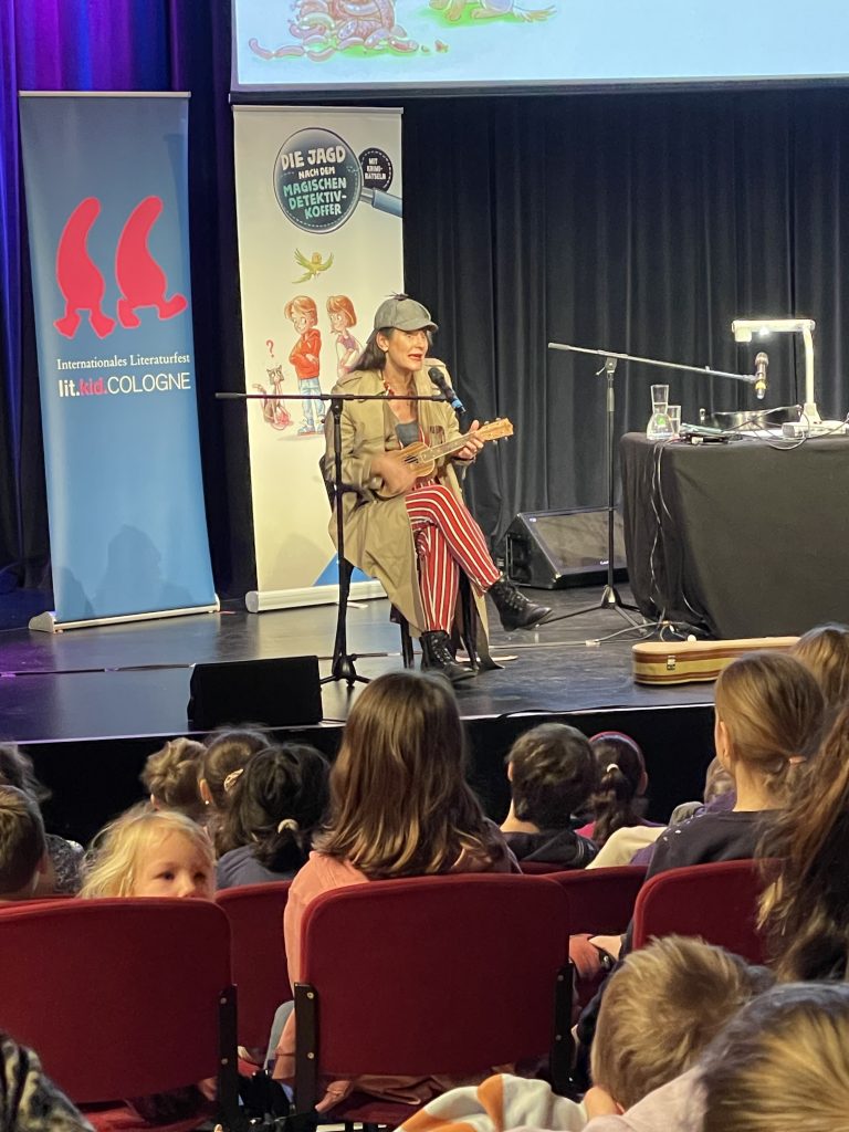 Am 21.März sind wir ganz aufgeregt mit der Straßenbahn zur Comedia Colonia gefahren. Dort waren echt viele Kinder. Nachdem wir alle einen Platz in dem großen Theater gefunden hatten, ging es los. Die Autorin Cally Stronk hat als erstes ein super Lied auf ihrer Ukulele gespielt, dann Bilder aus dem Buch gezeigt und ganz spannend vorgelesen. Leider hat sie uns nicht verraten, wie das Buch ausgeht. Das Ende der Geschichte müssen wir dann wohl in der Schule lesen. Darauf freuen wir uns! Bevor es in die Schule zurück ging, haben wir auf einem Spielplatz ein leckeres Picknick gemacht. Hoffentlich gehen wir im zweiten Schuljahr auch zur lit.kid.cologne!