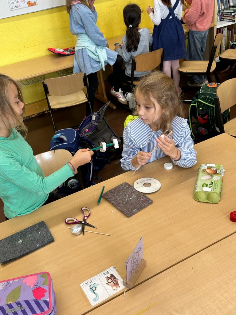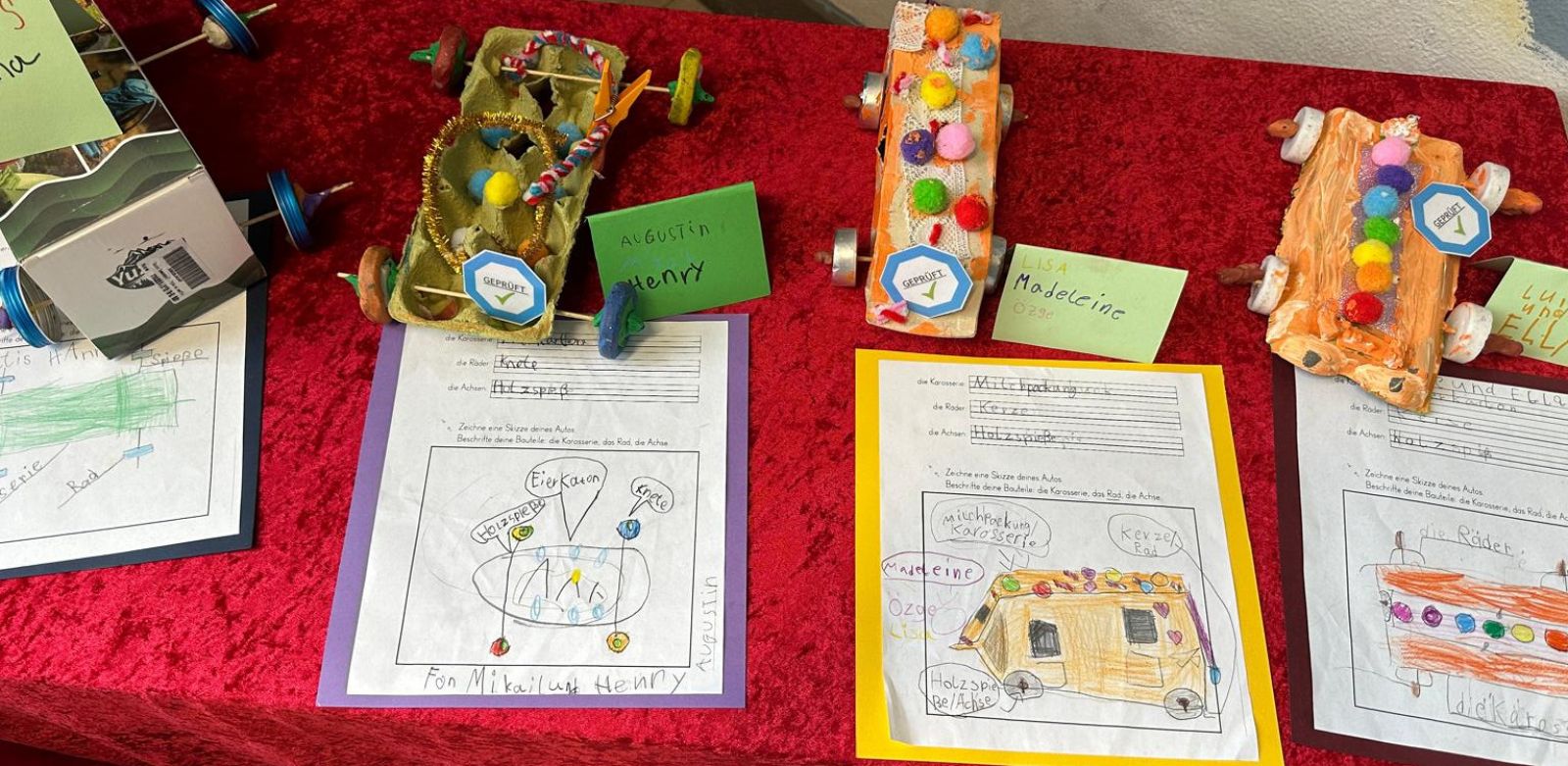 In den letzten Wochen haben wir uns im Sachunterricht mit Räderfahrzeugen beschäftigt. Nachdem wir gelernt haben, aus welchen Teilen ein Fahrzeug bestehen muss, um fahren zu können, haben wir unsere Autos zunächst geplant. Wir haben uns viele Gedanken gemacht. Schließlich haben wir sie dann aus dem Material, was wir mitgebracht haben, gebaut. Hier kamen Kartons, alte CDs, Zahnstocher, Holzspieße, Klopapierrollen und viele weitere Dinge zum Einsatz. Abschließend mussten unsere Fahrzeuge dann zum TÜV, wo wir kontrolliert haben, ob sie allen Kriterien entsprechen. Wir sind stolz, dass alle Fahrzeuge den TÜV bestanden haben! Unsere Fahrzeuge haben wir für euch ausgestellt und ihr könnt sie in den nächsten Tagen im Treppenhaus bestaunen.