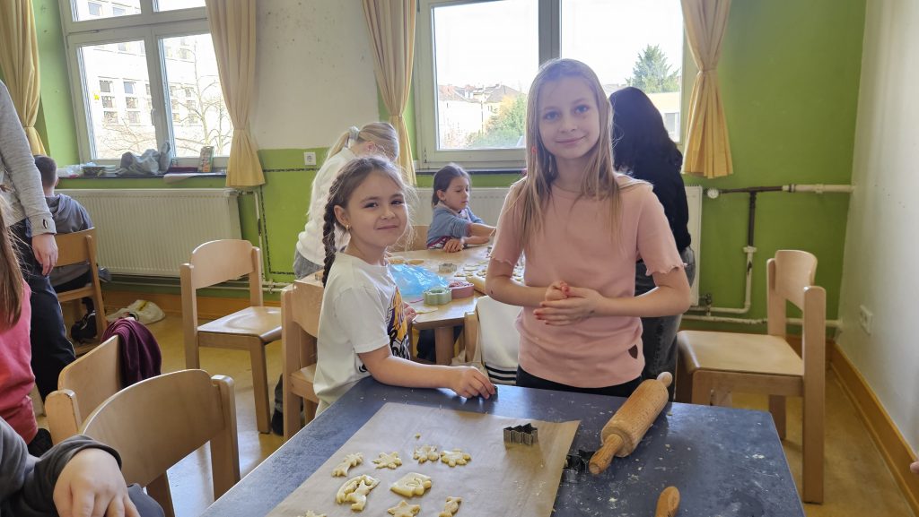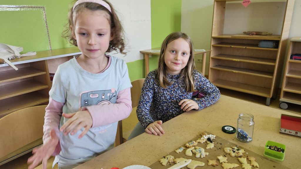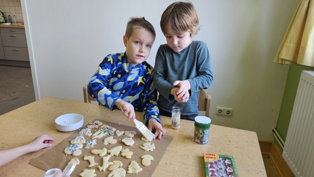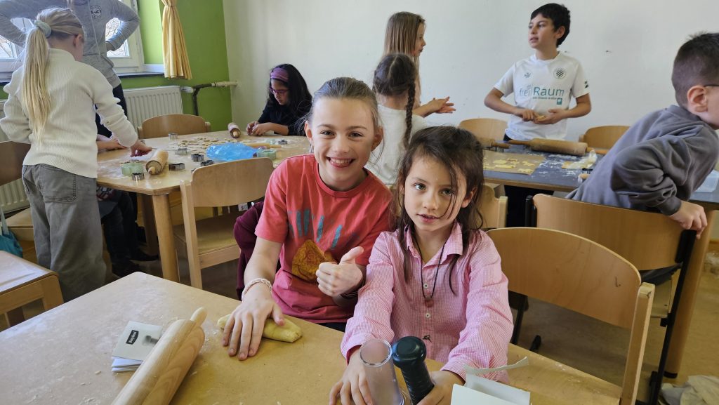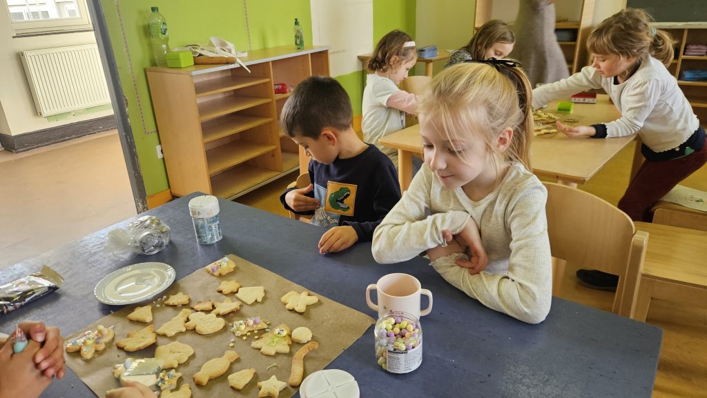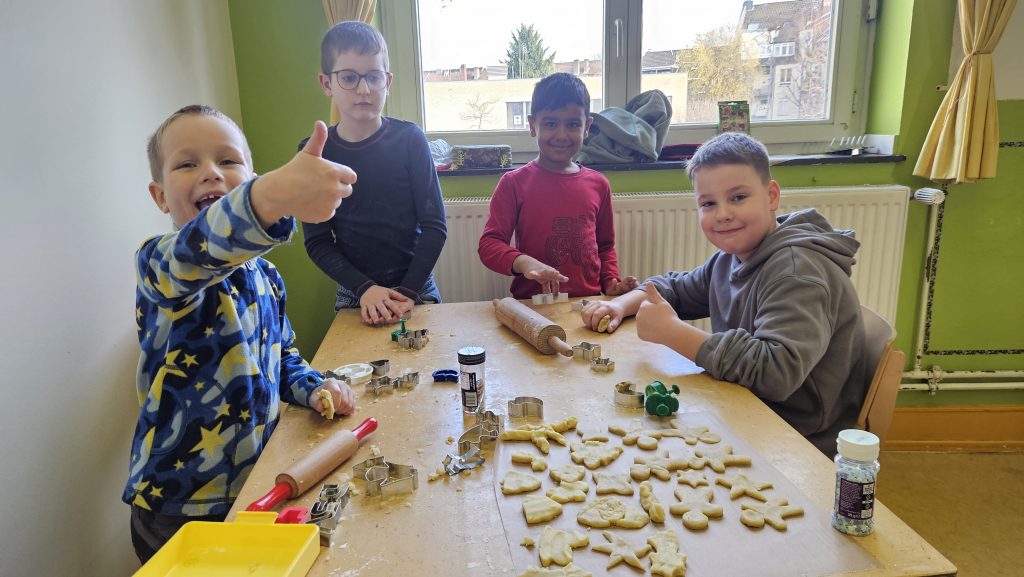 Am Dienstag und Mittwoch duftete es in der OPS ganz wunderbar nach Weihnachten. Ein Plätzchenduft hing in der Luft. Die Marienkäfer und Hummeln haben zusammen mit ihren Paten, den Kraken und Krebsen Plätzchen gebacken. Dabei wurde der Teig ausgerollt, ausgestochen, auf ein Backblech zum Backen gelegt und anschließend mit viel Zuckerguss und Streuseln dekoriert. Natürlich wurde in der Weihnachtsbäckerei ab und zu auch genascht. Trotzdem hatten wir am Ende viele leckere Plätzchen, die wir uns in den nächsten Tagen im Unterricht schmecken lassen können. Neben der ganzen Arbeit des Ausstechens und Verzierens, wollen wir auch noch einmal Danke sagen an die Eltern, die sich um die Vorbereitung des Teigs gekümmert haben!