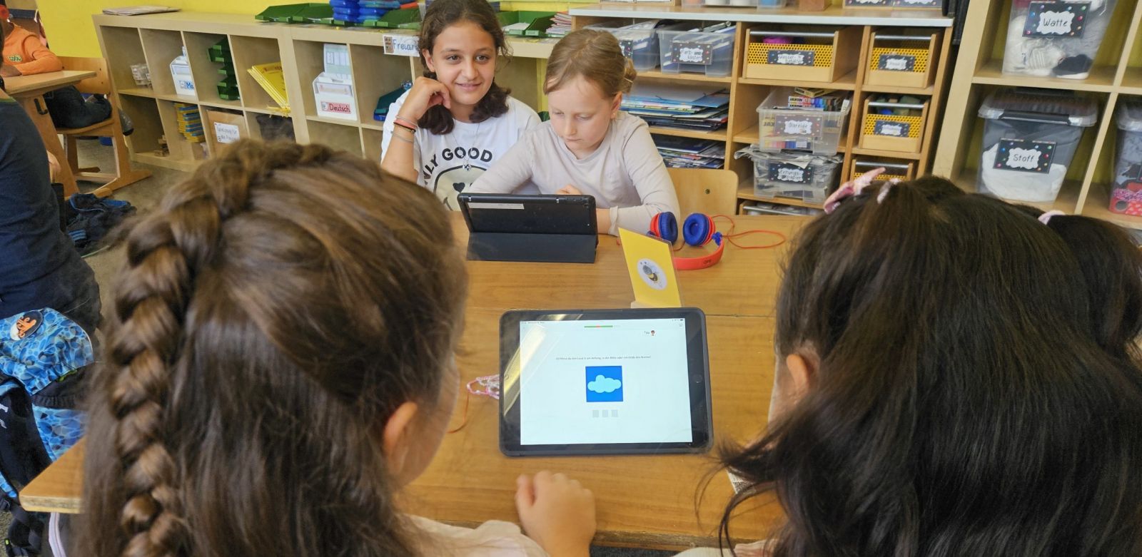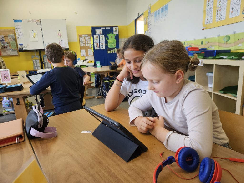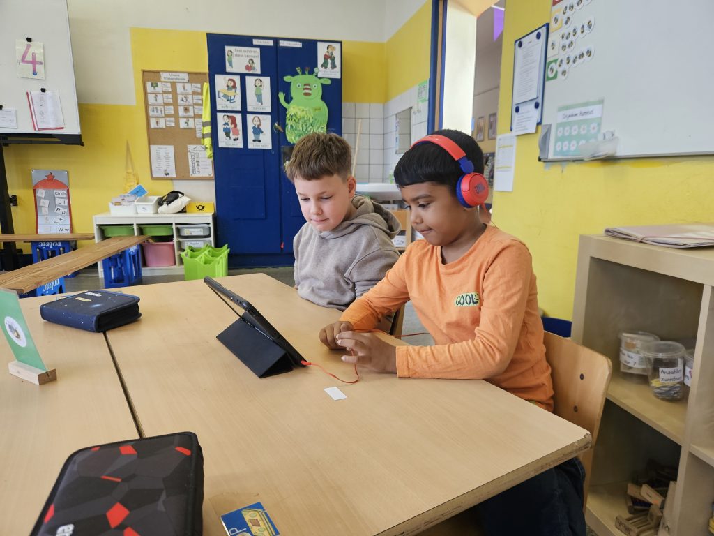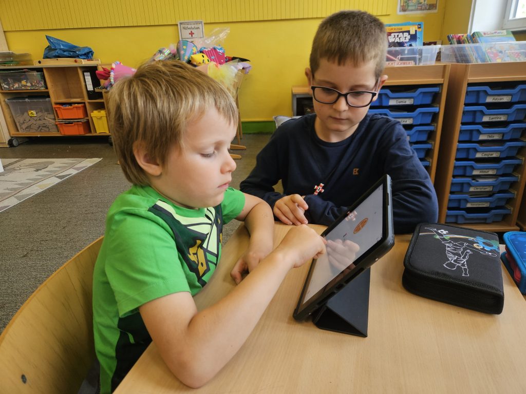 Bevor man mit dem iPad an der OPS lernen kann, muss man erst einmal wissen, wie wir die iPads an der Schule benutzen, welche Regeln es zu beachten gilt und wie sie funktionieren. All das haben die Hummeln heute von den Krebsen, ihrer Patenklasse, beigebracht bekommen. Es gab aber nicht nur allgemeine Infos. Es wurde alles direkt ausprobiert und mit der tollen Unterstützung der 4. Klässler konnten die Hummeln heute direkt ein paar Lernübungen in der Anton-App absolvieren. Mit den vielen hilfreichen Tipps fühlten sich die Erstklässler am Ende der Stunde sehr sicher im Umgang mit dem iPad. Das haben die Krebse toll gemacht! Vielen Dank!