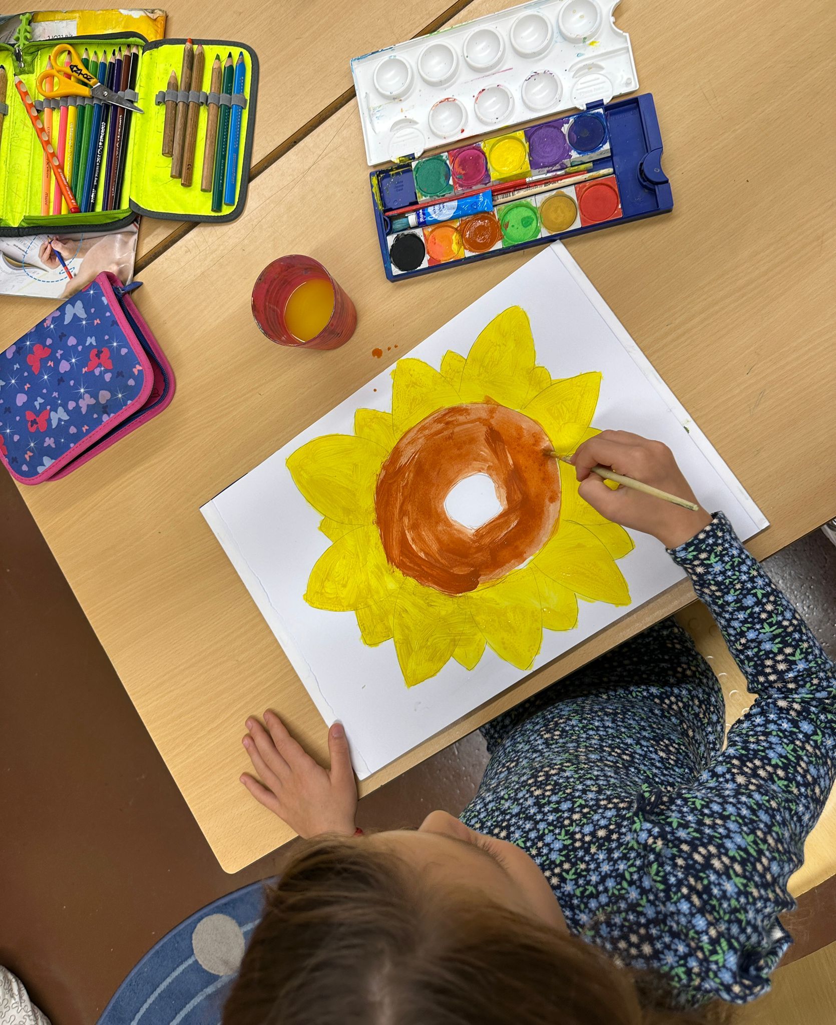 Im Kunstunterricht haben wir Sonnenblumen wie Vincent van Gogh gemalt.