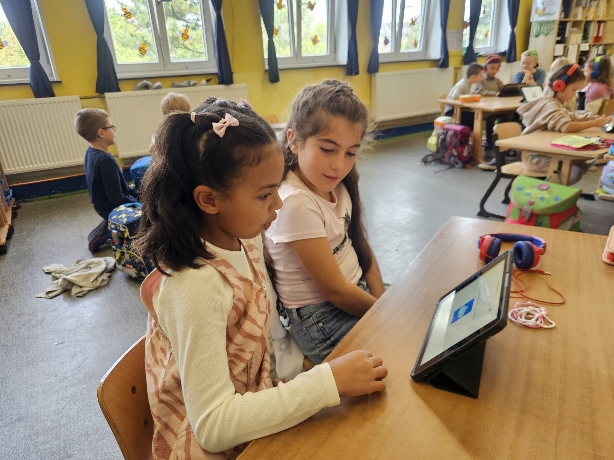 Mithilfe der Unterstützung durch die Krebsklasse, haben wir heute das erste Mal mit den iPads arbeiten können. Die vielen tollen Tipps unserer Paten haben uns schon zu kleinen Profis gemacht.