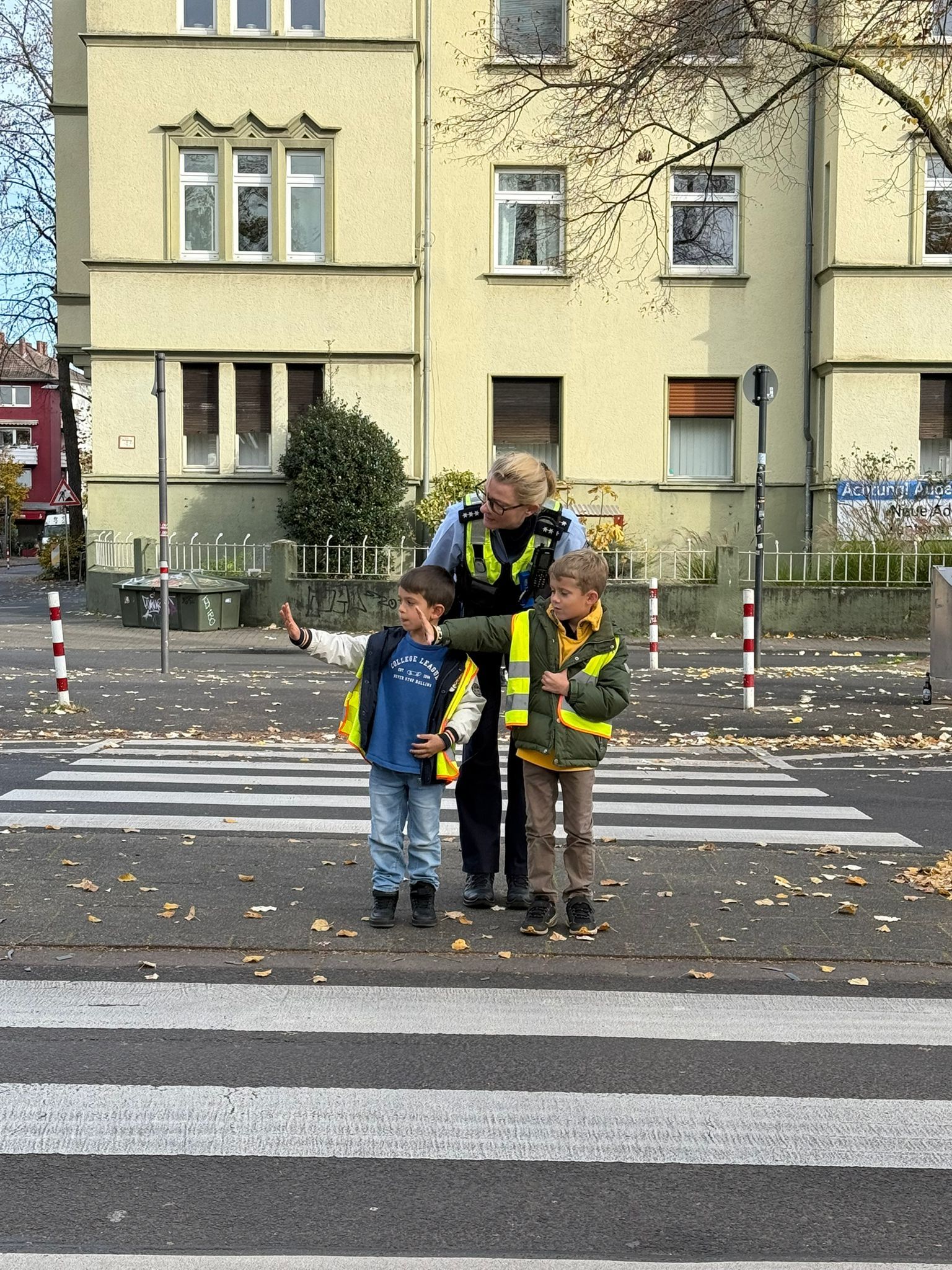 Wie überquere ich sicher eine Straße? Was ist der Stopp-Stein? Heute hatten wir Besuch von unserer Verkehrspolizistin, die uns alle Fragen beantworten konnte.