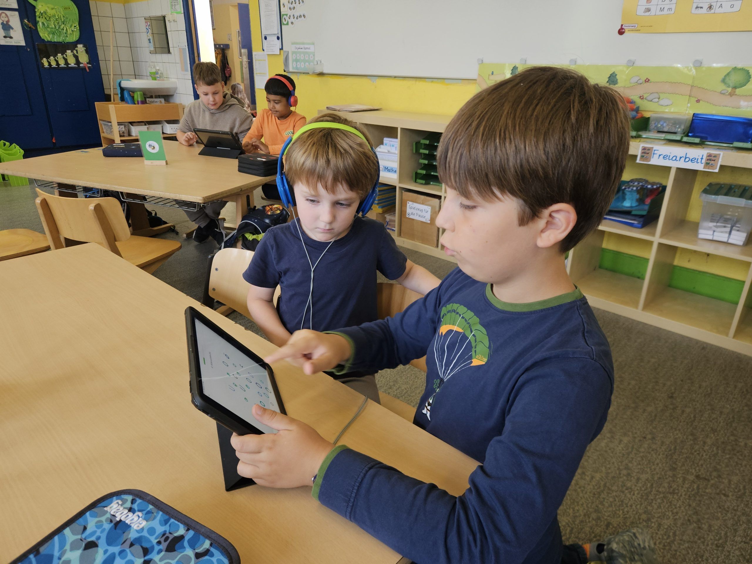 Mithilfe unserer Unterstützung konnten die Hummeln heute das erste Mal mit den iPads arbeiten. Durch die vielen tollen Tipps, die wir ihnen gegeben haben, haben wir unsere Paten schon zu kleinen Profis gemacht.
