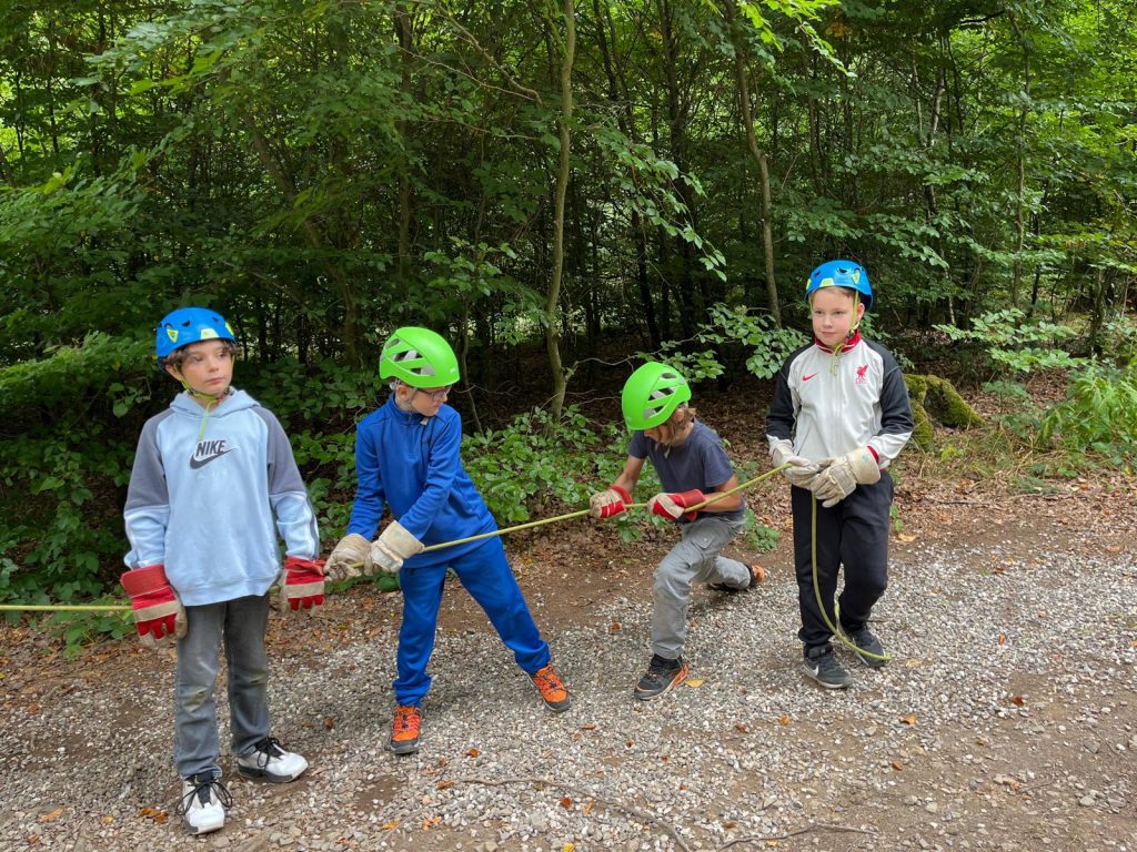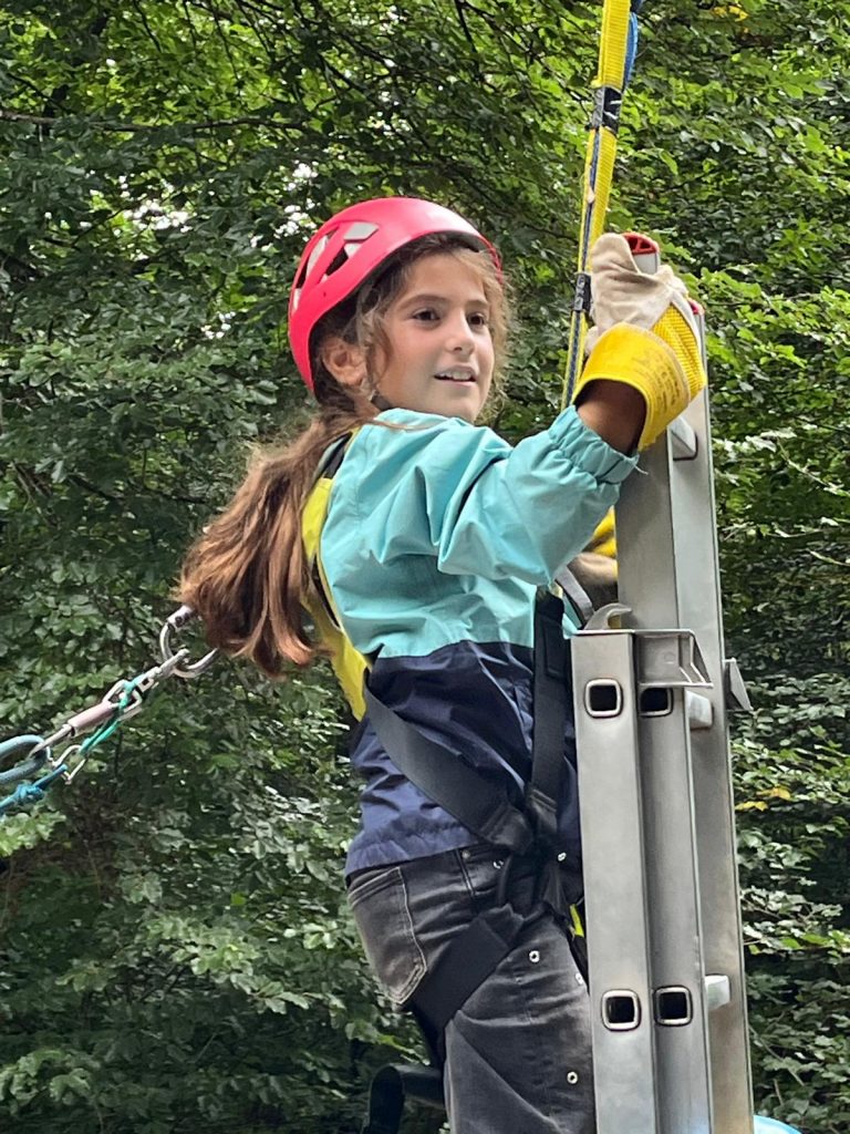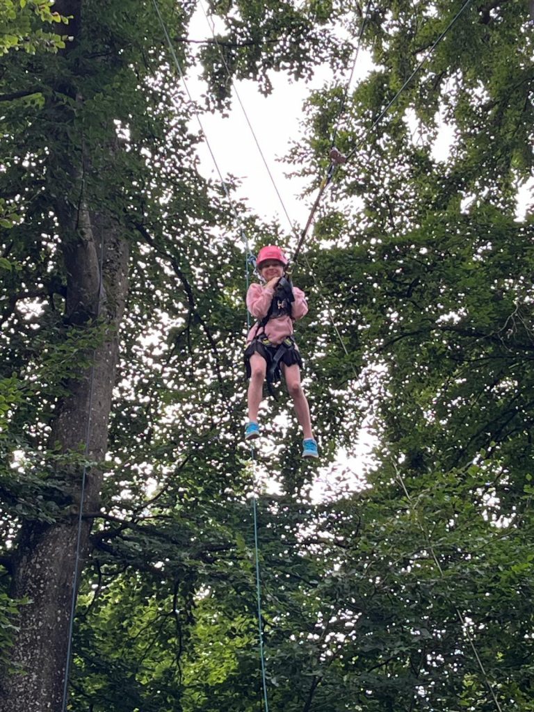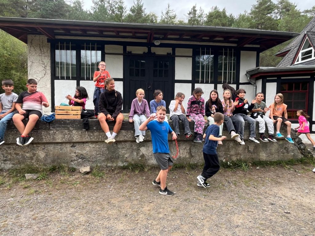 Wir sind zusammen mit einem Bus nach Ahrdorf in der Eifel gefahren. Dort haben wir in einem ehemaligen Bahnhof übernachtet. Es kommt sogar noch besser: an einem Tag waren wir nämlich in einem Hochseilgarten. Dort hatten wir sehr viel Spaß! Das erste Erlebnis war, dass wir auf einen 10 Meter hohen, abgestorbenen Baum klettern sollten. Ich hatte zwar Angst, weil mich nur meine Klassenkameraden gesichert haben, aber ich bin ganz hochgeklettert und gesprungen, und zwar von ganz oben!