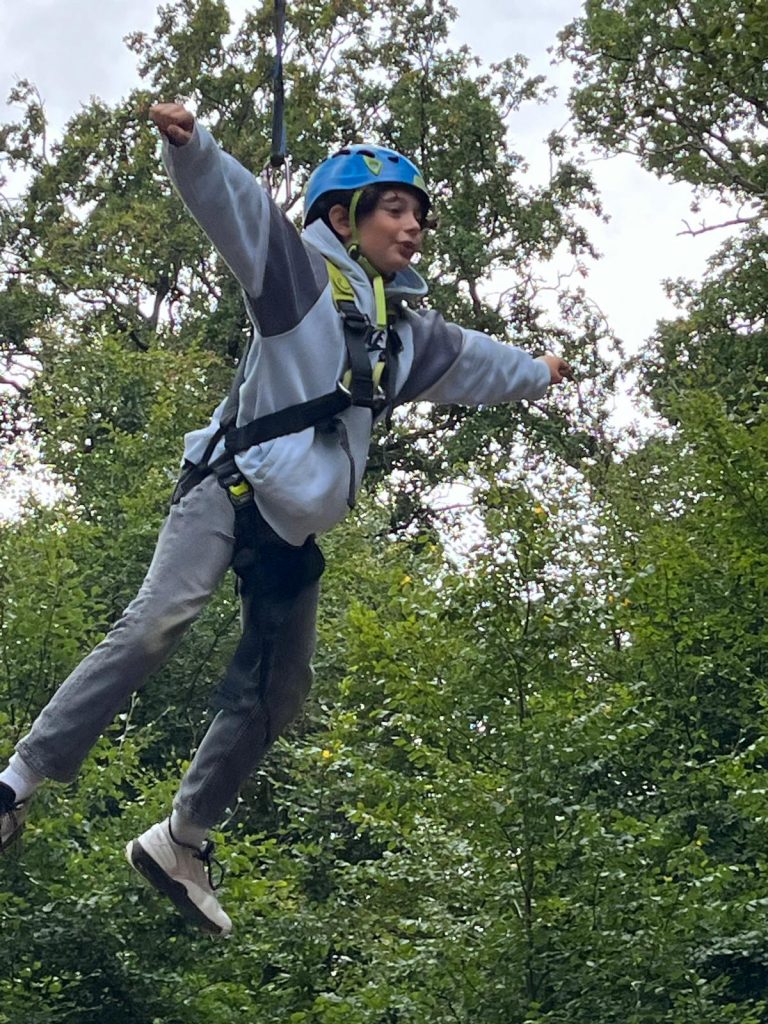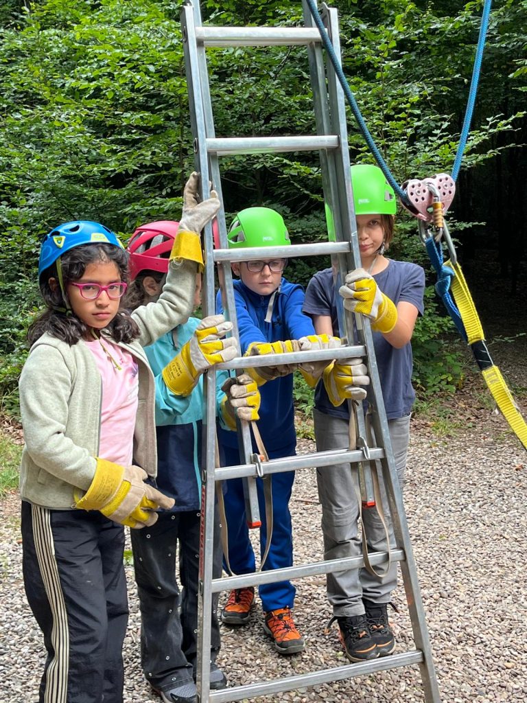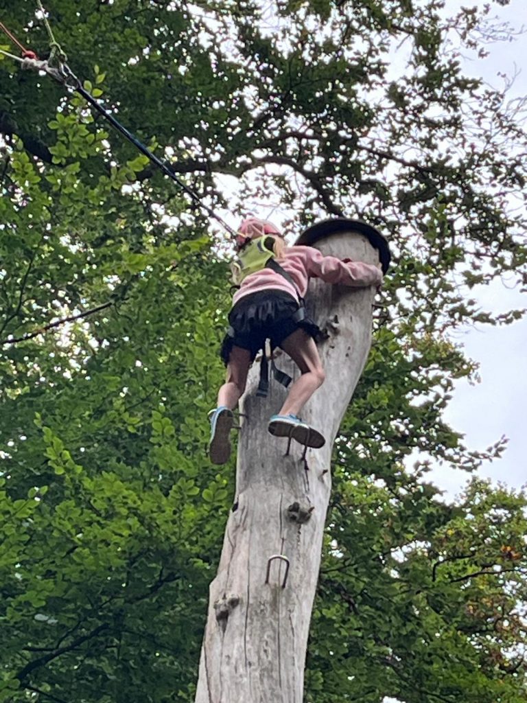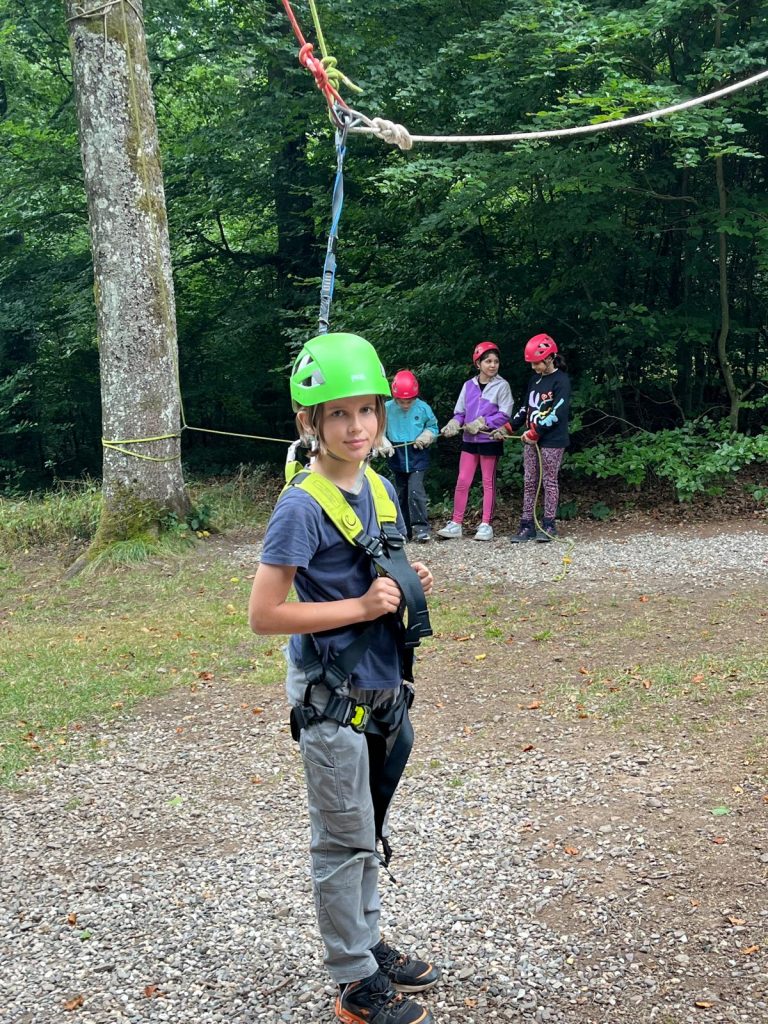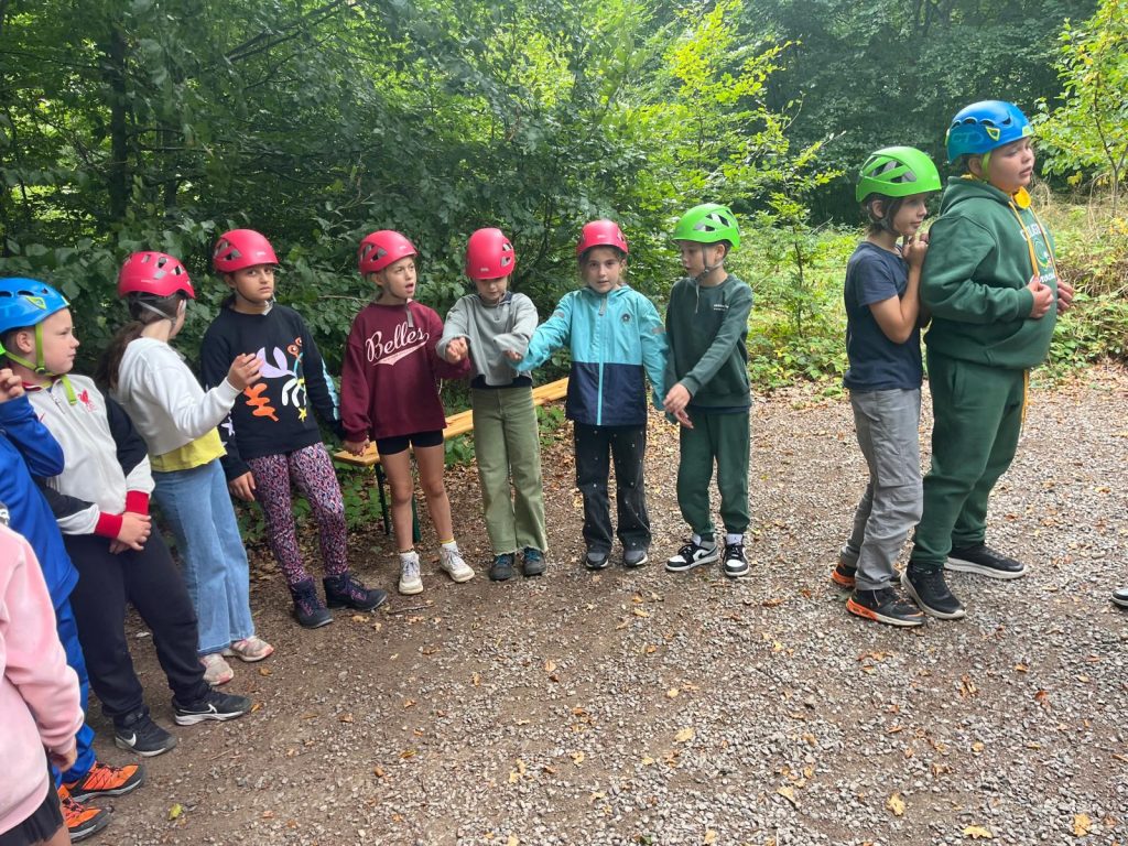 Wir sind zusammen mit einem Bus nach Ahrdorf in der Eifel gefahren. Dort haben wir in einem ehemaligen Bahnhof übernachtet. Es kommt sogar noch besser: an einem Tag waren wir nämlich in einem Hochseilgarten. Dort hatten wir sehr viel Spaß! Das erste Erlebnis war, dass wir auf einen 10 Meter hohen, abgestorbenen Baum klettern sollten. Ich hatte zwar Angst, weil mich nur meine Klassenkameraden gesichert haben, aber ich bin ganz hochgeklettert und gesprungen, und zwar von ganz oben!
