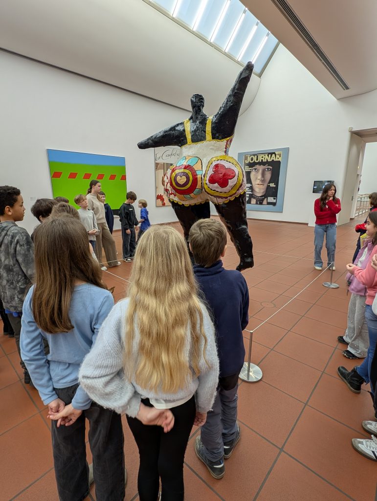 Danach sind wir in die obere Etage des Museums gegangen und haben uns viele Skulpturen angeschaut. Dazu gehörte auch eine „Nana“ von Niki de Saint Phalle. Wir haben gelernt, was ein Stabile und ein Mobile ist und worin der Unterschied besteht. Es ging bei unserer Führung hauptsächlich um Skulpturen mit einem Stabile und einem Mobile. Außerdem haben wir uns auch Bilder aus der Pop Art angeguckt.