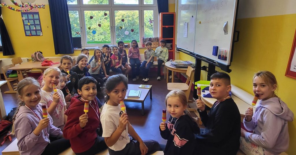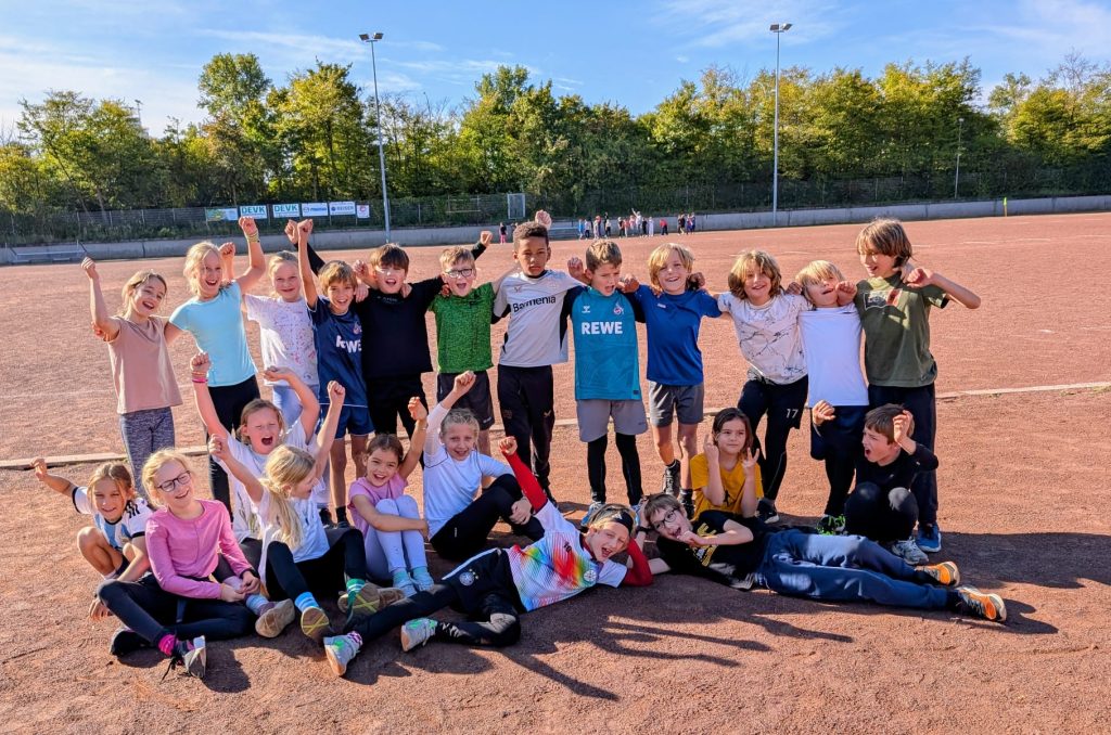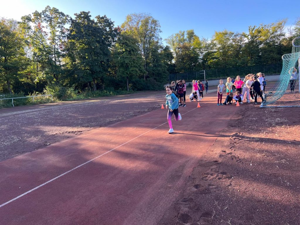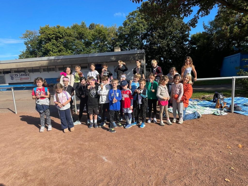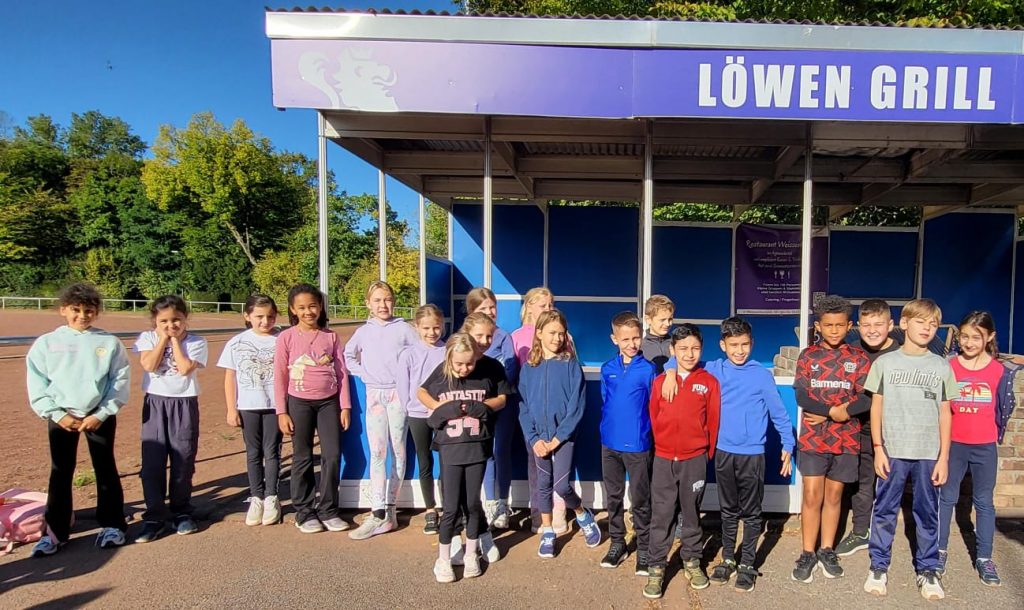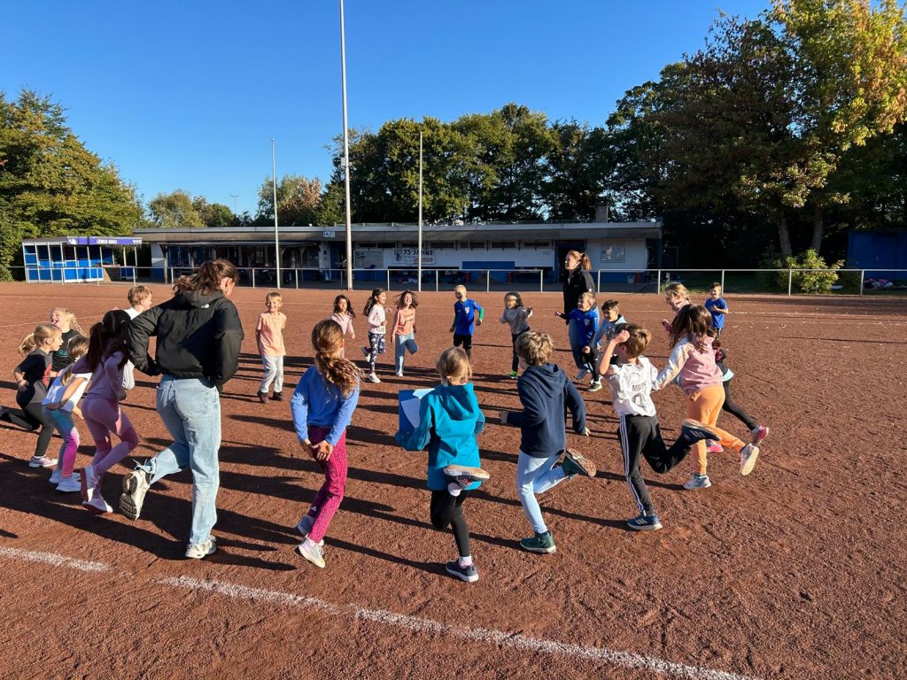 Nachdem unser Sportfest Ende des letzten Schuljahres abgesagt werden musste, konnten wir es heute bei schönem Herbstwetter nachholen. Bei kühlen Temperaturen, aber strahlendem Sonnenschein ging es morgens für die Klassen 2, 3 und 4 auf den Sportplatz des DJK Löwe. Dort mussten wir in drei Disziplinen antreten: Weitsprung, Sprint und Weitwurf. Natürlich feuerten wir uns gegenseitig an. Zur Belohnung gab es am Ende Medaillen und ein Eis für jeden. Das war super!