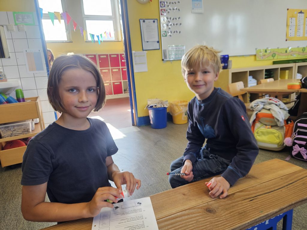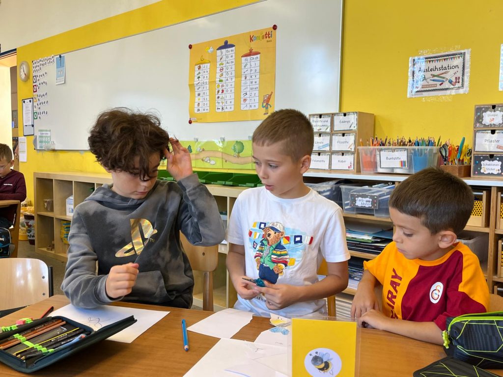 Direkt in ihrer ersten Schulwochen lernten die Marienkäfer und Hummeln ihre Paten aus den 4. Schuljahren kennen. Auf der Schulrallye, bei der knifflige Aufgaben zu lösen waren, lernten sich die Erstklässler und ihre Paten kennen. Alle Kinder meisterten erfolgreich die Aufgaben und waren stolz auf die neuen Entdeckungen, die sie alle im Schulgebäude und dem Schulhof gemacht hatten.
