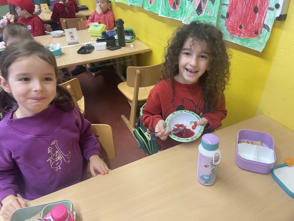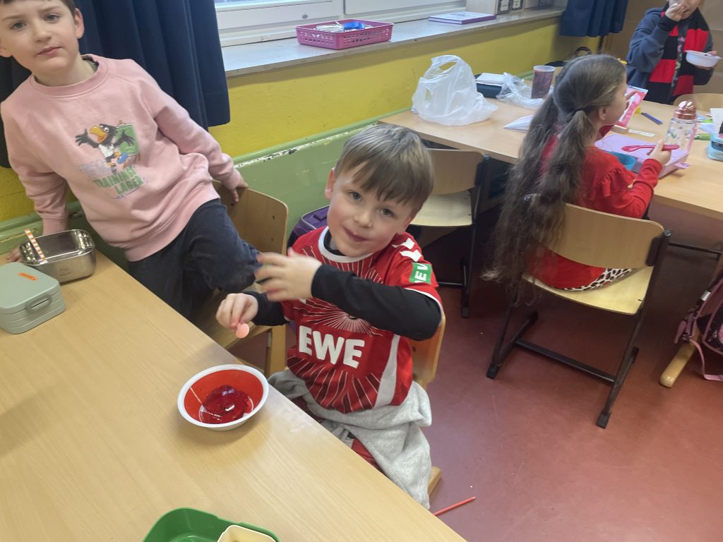 Heute haben wir den Buchstaben R genauer kennengelernt! Wir sind alle in roten Sachen gekommen und haben rote Gegenstände mitgebracht. Danach haben wir noch eigene Rotbücher hergestellt. Das war ein lustiger Schultag.